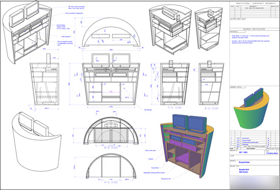 While not initially evident from the designers 2D drawings, the conical nature of the desk